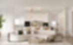 Dramatic stone and gold accents add a touch of glamour, while a consistent use of molding throughout the floor ensures a cohesive flow.